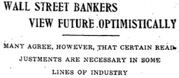 On Friday, the WSJ takes the temperature of bankers from coast to coast. Many of the abuses and illegitimate practices of 1919 have been eradicated. One banker said: “Everyone knows that political and financial readjustments are required abroad. As far as American banks are concerned, the worst has been seen thanks to the Federal Reserve System.”